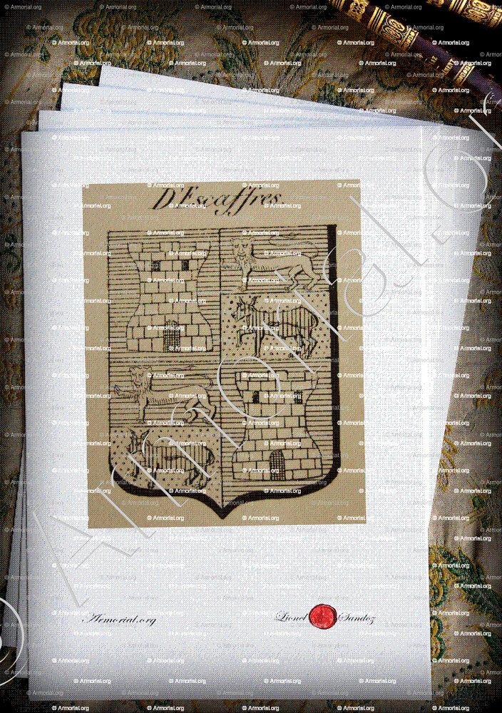 Familie d'ESCAFFRES - Wappen familien d'ESCAFFRES - Wappen der Familie d'ESCAFFRES - Familienwappen d'ESCAFFRES - Schild d'ESCAFFRES - Schutzwaffe d'ESCAFFRES - Wappen d'ESCAFFRES - Wappenbuch d'ESCAFFRES - Siegel d'ESCAFFRES - Archiv d'ESCAFFRES - Stammbaum d'ESCAFFRES - Wappenkunde d'ESCAFFRES - Heraldik d'ESCAFFRES - Ursprung d'ESCAFFRES - Die d'ESCAFFRES in der Geschichte. - Die d'ESCAFFRES in den Adelsstand - Wahlspruch d'ESCAFFRES - Bürgerliche Wappen d'ESCAFFRES - Adelswappen d'ESCAFFRES - Stammwappen d'ESCAFFRES - Wappenrolle d'ESCAFFRES - Genealogie d'ESCAFFRES - Abstammung d'ESCAFFRES - Nachkomme d'ESCAFFRES -Deszendent d'ESCAFFRES.