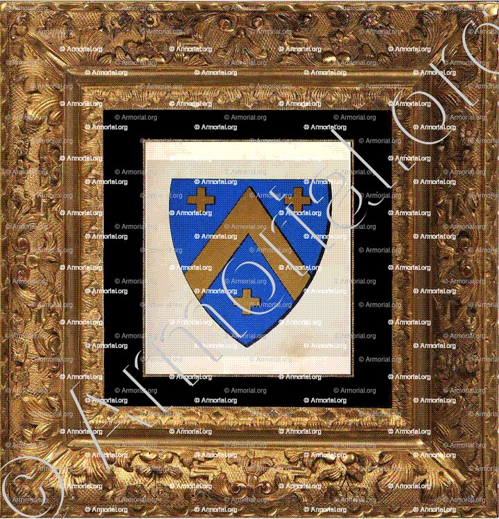 " D'azur, au chevron d'or, accompagné de trois croisettes de même, 2 en chef et une en pointe ."
