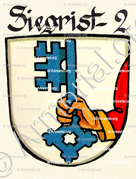 "D’argent au dextrochère de gueules à la manchette d’or mouvant du flanc senestre et tenant une clef d’azur."