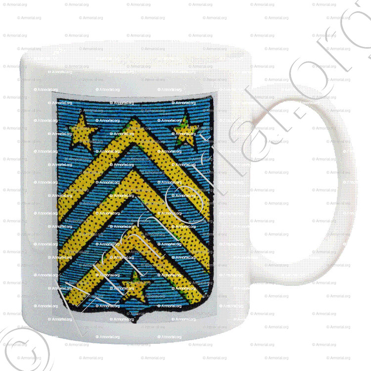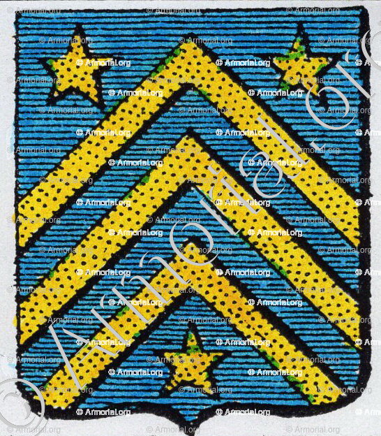 " D'azur, à trois chevrons d'or, accompagné de trois étoiles de même. "