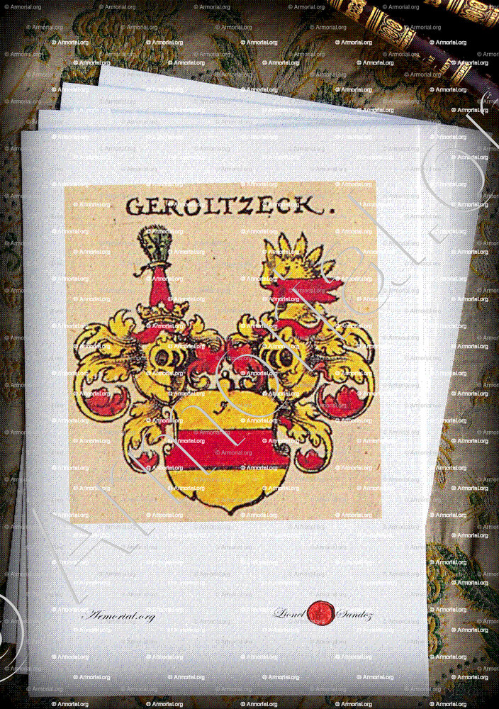 Famille GEROLTZECK - Blason GEROLTZECK - Blasonnement GEROLTZECK - Armoiries GEROLTZECK - Armoiries de famille GEROLTZECK - Armorial GEROLTZECK - Armes GEROLTZECK - Armes sur un écu GEROLTZECK - Ecu GEROLTZECK - Ecus armoriés GEROLTZECK - Bannière, flanchières, caparaçon armoriés GEROLTZECK - Bouclier armorié GEROLTZECK - Sceau GEROLTZECK - Sceau armorié GEROLTZECK - Archives GEROLTZECK - Généalogie GEROLTZECK - Arbre généalogique GEROLTZECK - Ascendance GEROLTZECK - Descendance GEROLTZECK - Héraldique GEROLTZECK - Origine GEROLTZECK. - Les GEROLTZECK dans l'Histoire - Les GEROLTZECK dans la noblesse - Devise GEROLTZECK - Armoiries de bourgeoisie GEROLTZECK - Armoiries de noblesse GEROLTZECK.