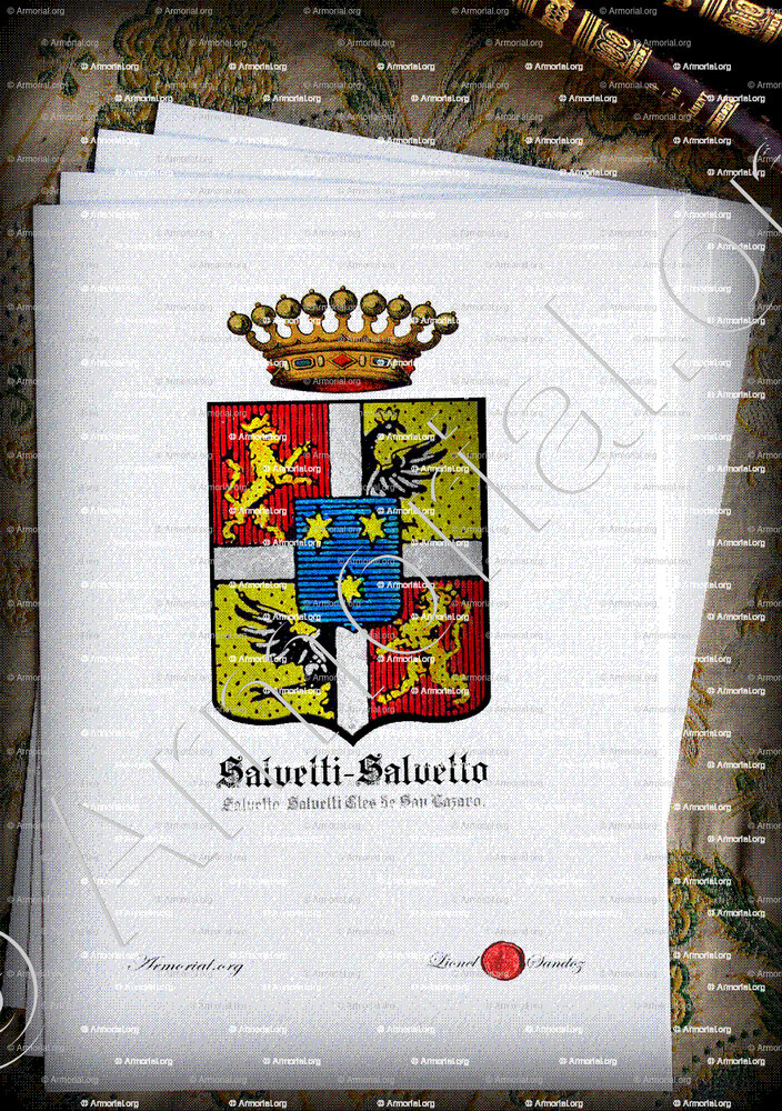 Famille SALVETTI SALVETTO Comtes de SAN LAZARO - Blason SALVETTI SALVETTO Comtes de SAN LAZARO - Blasonnement SALVETTI SALVETTO Comtes de SAN LAZARO - Armoiries SALVETTI SALVETTO Comtes de SAN LAZARO - Armoiries de famille SALVETTI SALVETTO Comtes de SAN LAZARO - Armorial SALVETTI SALVETTO Comtes de SAN LAZARO - Armes SALVETTI SALVETTO Comtes de SAN LAZARO - Armes sur un écu SALVETTI SALVETTO Comtes de SAN LAZARO - Ecu SALVETTI SALVETTO Comtes de SAN LAZARO - Ecus armoriés SALVETTI SALVETTO Comtes de SAN LAZARO - Bannière, flanchières, caparaçon armoriés SALVETTI SALVETTO Comtes de SAN LAZARO - Bouclier armorié SALVETTI SALVETTO Comtes de SAN LAZARO - Sceau SALVETTI SALVETTO Comtes de SAN LAZARO - Sceau armorié SALVETTI SALVETTO Comtes de SAN LAZARO - Archives SALVETTI SALVETTO Comtes de SAN LAZARO - Généalogie SALVETTI SALVETTO Comtes de SAN LAZARO - Arbre généalogique SALVETTI SALVETTO Comtes de SAN LAZARO - Ascendance SALVETTI SALVETTO Comtes de SAN LAZARO - Descendance SALVETTI SALVETTO Comtes de SAN LAZARO - Héraldique SALVETTI SALVETTO Comtes de SAN LAZARO - Origine SALVETTI SALVETTO Comtes de SAN LAZARO. - Les SALVETTI SALVETTO Comtes de SAN LAZARO dans l'Histoire - Les SALVETTI SALVETTO Comtes de SAN LAZARO dans la noblesse - Devise SALVETTI SALVETTO Comtes de SAN LAZARO - Armoiries de bourgeoisie SALVETTI SALVETTO Comtes de SAN LAZARO - Armoiries de noblesse SALVETTI SALVETTO Comtes de SAN LAZARO.