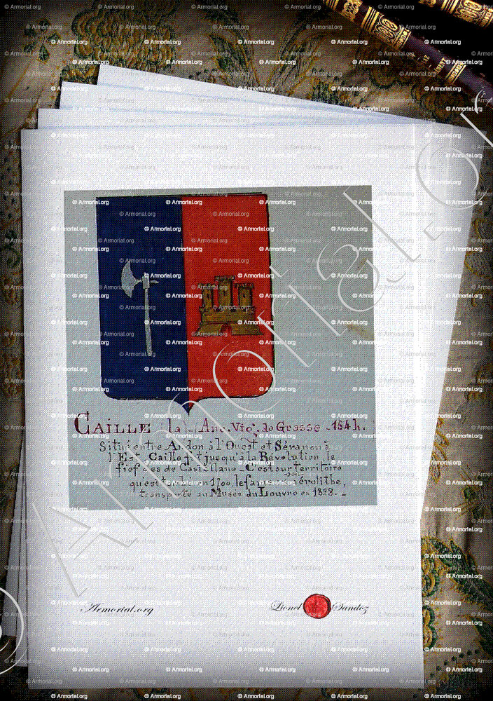 1. Un magnifique fac-similé aquarellé sur papier Vélin d’Arches (format A4) de ce blason