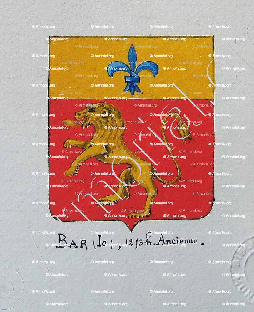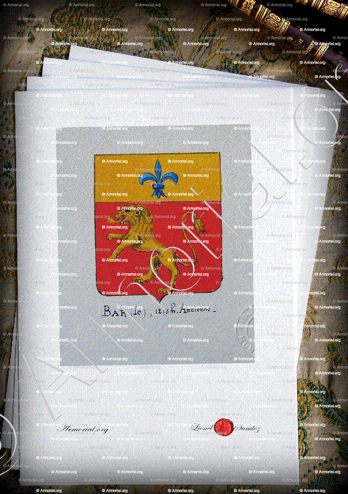 1. Un magnifique fac-similé aquarellé sur papier Vélin d’Arches (format A4) de ce blason