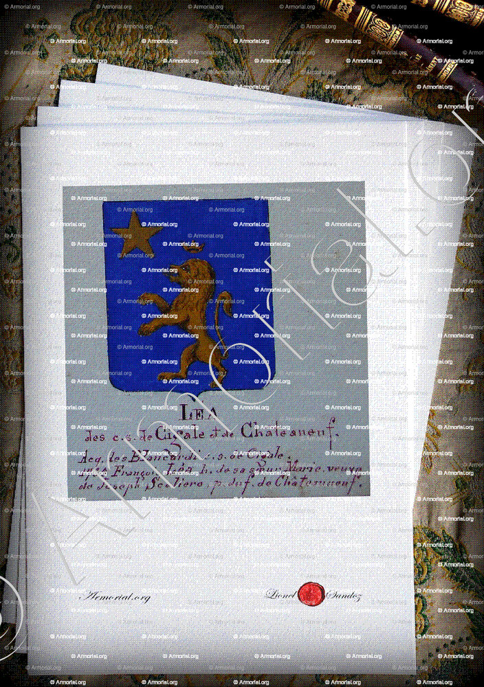1. Un magnifique fac-similé aquarellé sur papier Vélin d’Arches (format A4) de ce blason