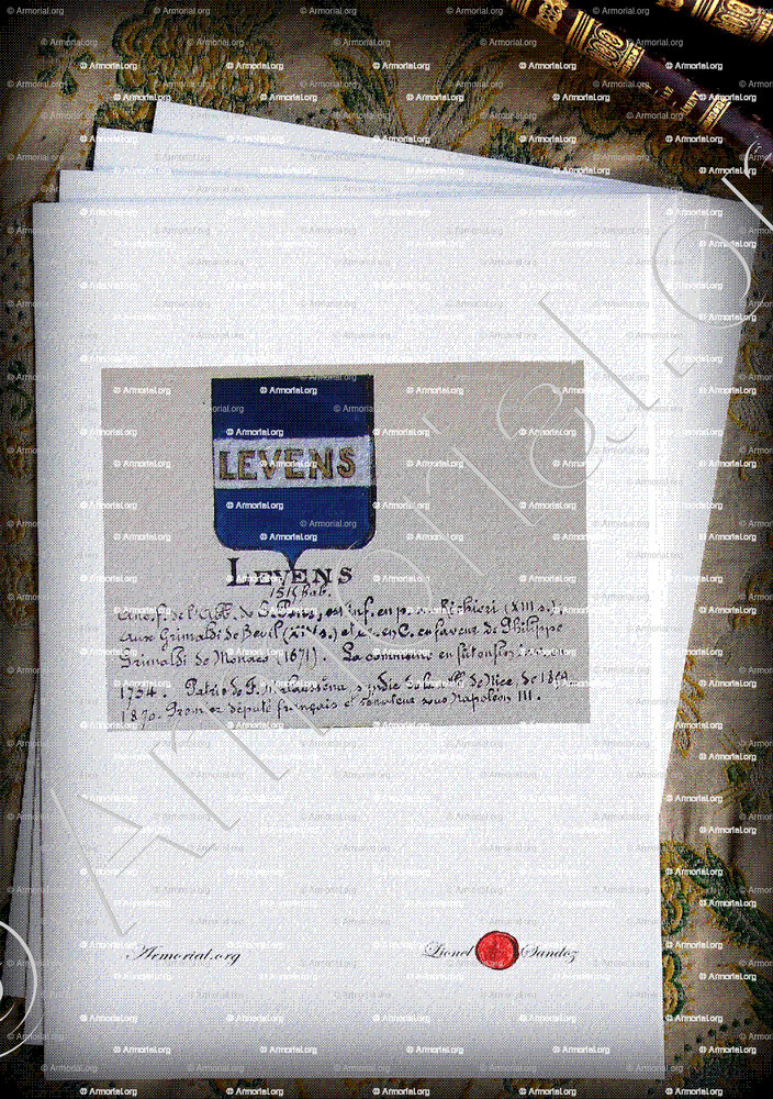 * Lionel Sandoz, artiste-peintre héraldiste, auteur d’une exposition des « Armories des vieilles familles du Comté de Nice » au Palais Masséna en 1988, vous propose :