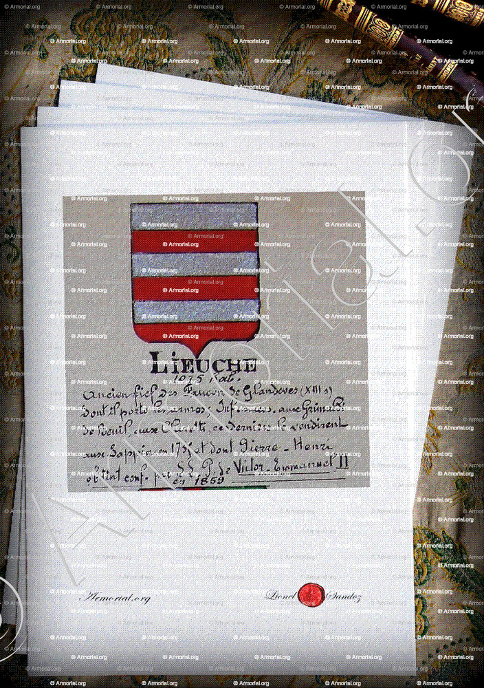 1. Un magnifique fac-similé aquarellé sur papier Vélin d’Arches (format A4) de ce blason