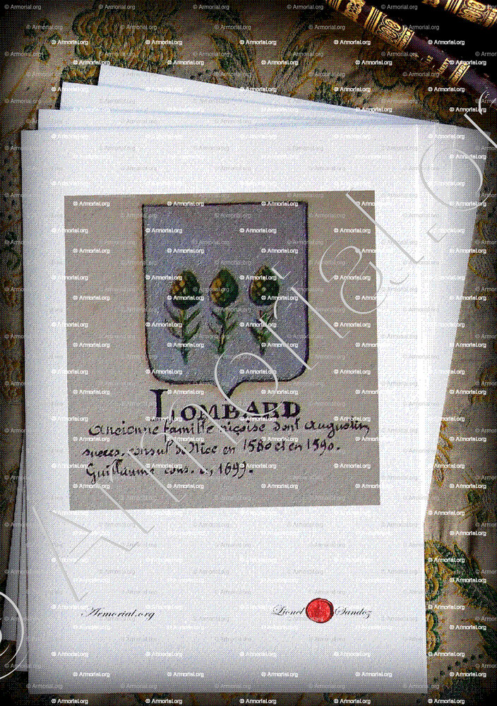 * Lionel Sandoz, artiste-peintre héraldiste, auteur d’une exposition des « Armories des vieilles familles du Comté de Nice » au Palais Masséna en 1988, vous propose :