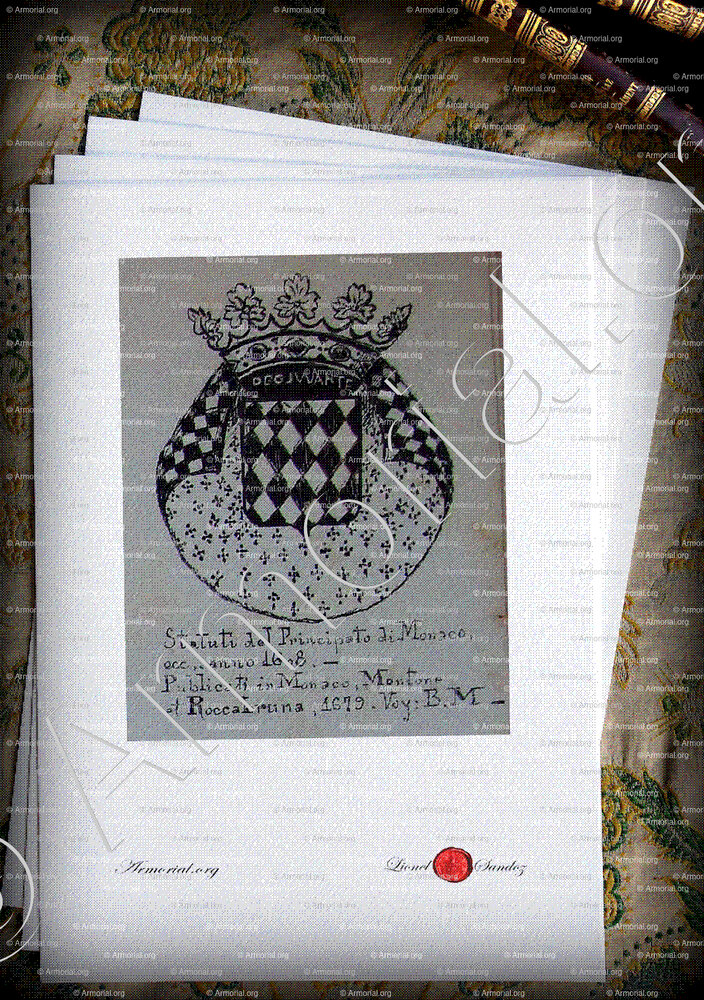 * Lionel Sandoz, artiste-peintre héraldiste, auteur d’une exposition des « Armories des vieilles familles du Comté de Nice » au Palais Masséna en 1988, vous propose :