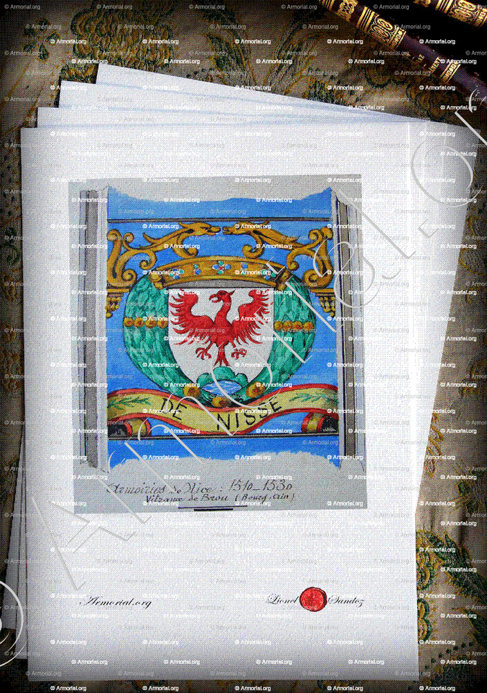 * Lionel Sandoz, artiste-peintre héraldiste, auteur d’une exposition des « Armories des vieilles familles du Comté de Nice » au Palais Masséna en 1988, vous propose :