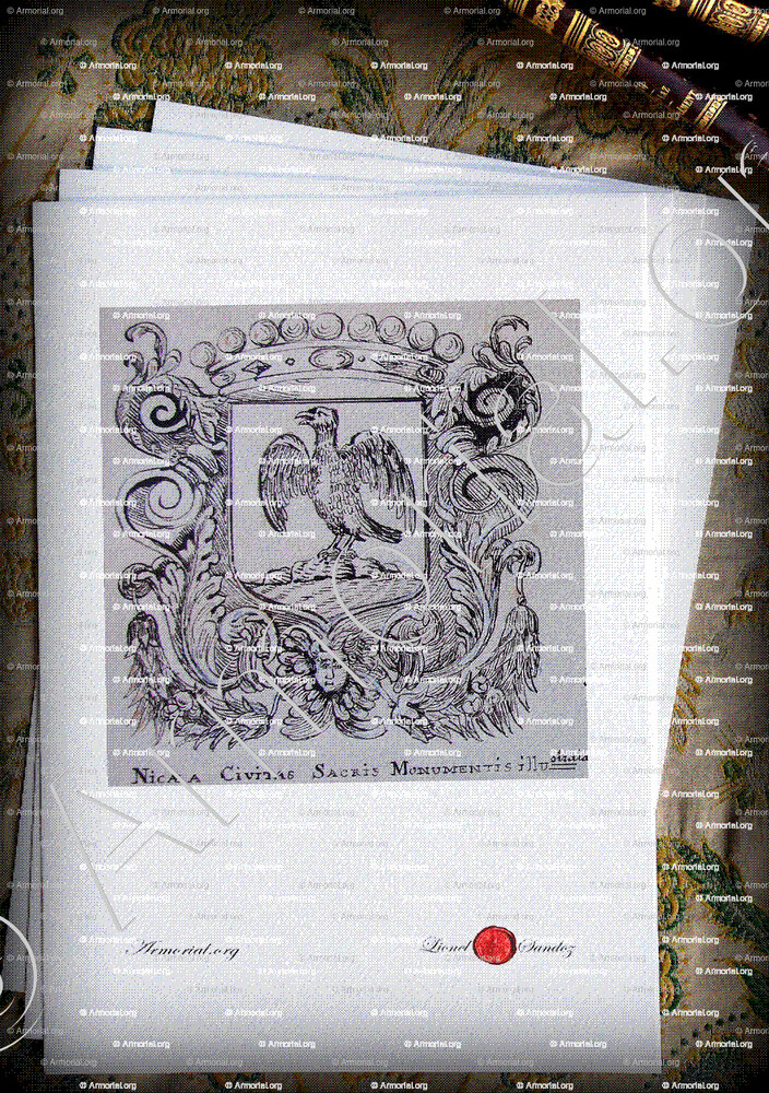 * Lionel Sandoz, artiste-peintre héraldiste, auteur d’une exposition des « Armories des vieilles familles du Comté de Nice » au Palais Masséna en 1988, vous propose :