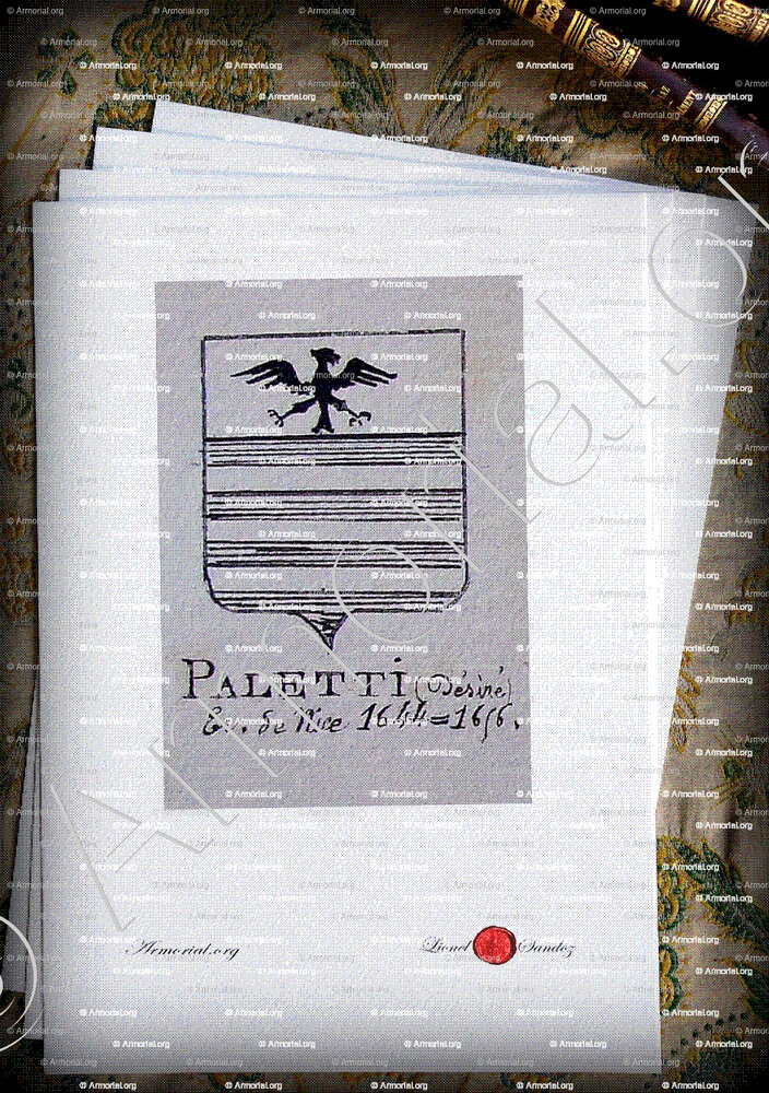 * Lionel Sandoz, artiste-peintre héraldiste, auteur d’une exposition des « Armories des vieilles familles du Comté de Nice » au Palais Masséna en 1988, vous propose :