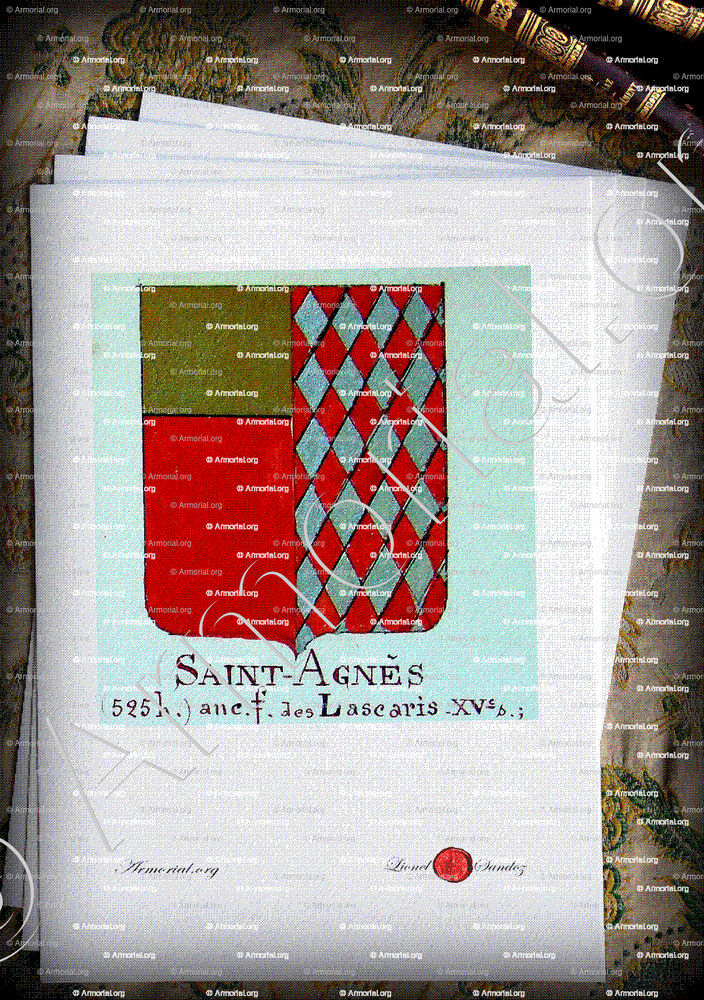 * Lionel Sandoz, artiste-peintre héraldiste, auteur d’une exposition des « Armories des vieilles familles du Comté de Nice » au Palais Masséna en 1988, vous propose :