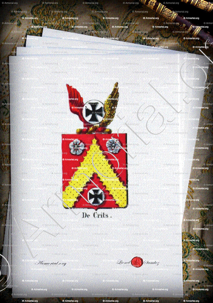Famiglia DE CRITS - Blasone DE CRITS - Stemma DE CRITS - Stemma di famiglia DE CRITS - Lo stemma araldico della famiglia DE CRITS - Lo stemma di DE CRITS - Araldica e stemma DE CRITS - Registro Araldico DE CRITS - Stemmario DE CRITS - Registro Genealogico DE CRITS - Sigillo DE CRITS - Archivio DE CRITS - Genealogia DE CRITS - Albero genealogico DE CRITS - Araldica DE CRITS - Origine DE CRITS - In Storia DE CRITS - DE CRITS nella nobiltà.