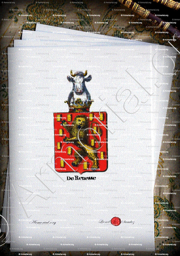Famiglia DE RENESSE - Blasone DE RENESSE - Stemma DE RENESSE - Stemma di famiglia DE RENESSE - Lo stemma araldico della famiglia DE RENESSE - Lo stemma di DE RENESSE - Araldica e stemma DE RENESSE - Registro Araldico DE RENESSE - Stemmario DE RENESSE - Registro Genealogico DE RENESSE - Sigillo DE RENESSE - Archivio DE RENESSE - Genealogia DE RENESSE - Albero genealogico DE RENESSE - Araldica DE RENESSE - Origine DE RENESSE - In Storia DE RENESSE - DE RENESSE nella nobiltà.