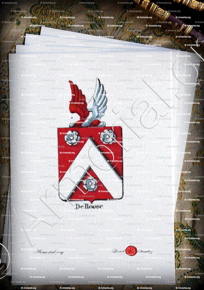 Famiglia DE ROOSE - Blasone DE ROOSE - Stemma DE ROOSE - Stemma di famiglia DE ROOSE - Lo stemma araldico della famiglia DE ROOSE - Lo stemma di DE ROOSE - Araldica e stemma DE ROOSE - Registro Araldico DE ROOSE - Stemmario DE ROOSE - Registro Genealogico DE ROOSE - Sigillo DE ROOSE - Archivio DE ROOSE - Genealogia DE ROOSE - Albero genealogico DE ROOSE - Araldica DE ROOSE - Origine DE ROOSE - In Storia DE ROOSE - DE ROOSE nella nobiltà.