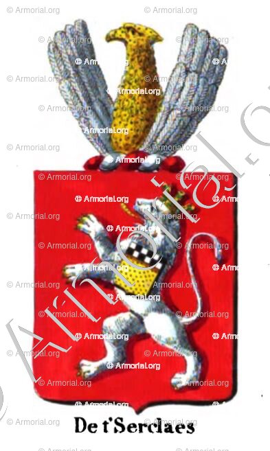 Family DE T'SERCLAES - Blazon DE T'SERCLAES - Coat of arms DE T'SERCLAES -Arms of DE T'SERCLAES - Family arms DE T'SERCLAES - Emblem DE T'SERCLAES - Crest DE T'SERCLAES - Seal DE T'SERCLAES - Heraldic DE T'SERCLAES - heraldic symbol DE T'SERCLAES - Genealogy DE T'SERCLAES - Family tree DE T'SERCLAES - Origin DE T'SERCLAES - The DE T'SERCLAES in the History - The DE T'SERCLAES in the nobility - Motto DE T'SERCLAES.