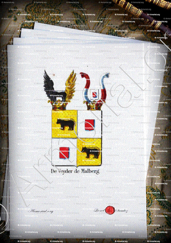 Famille DE VEYDER DE MALBERG - Blason DE VEYDER DE MALBERG - Blasonnement DE VEYDER DE MALBERG - Armoiries DE VEYDER DE MALBERG - Armoiries de famille DE VEYDER DE MALBERG - Armorial DE VEYDER DE MALBERG - Armes DE VEYDER DE MALBERG - Armes sur un écu DE VEYDER DE MALBERG - Ecu DE VEYDER DE MALBERG - Ecus armoriés DE VEYDER DE MALBERG - Bannière, flanchières, caparaçon armoriés DE VEYDER DE MALBERG - Bouclier armorié DE VEYDER DE MALBERG - Sceau DE VEYDER DE MALBERG - Sceau armorié DE VEYDER DE MALBERG - Archives DE VEYDER DE MALBERG - Généalogie DE VEYDER DE MALBERG - Arbre généalogique DE VEYDER DE MALBERG - Ascendance DE VEYDER DE MALBERG - Descendance DE VEYDER DE MALBERG - Héraldique DE VEYDER DE MALBERG - Origine DE VEYDER DE MALBERG . - Les DE VEYDER DE MALBERG dans l'Histoire - Les DE VEYDER DE MALBERG dans la noblesse - Devise DE VEYDER DE MALBERG - Armoiries de bourgeoisie DE VEYDER DE MALBERG - Armoiries de noblesse DE VEYDER DE MALBERG .