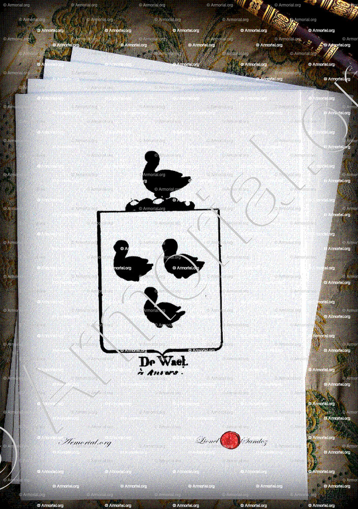 Famiglia DE WAEL - Blasone DE WAEL - Stemma DE WAEL - Stemma di famiglia DE WAEL - Lo stemma araldico della famiglia DE WAEL - Lo stemma di DE WAEL - Araldica e stemma DE WAEL - Registro Araldico DE WAEL - Stemmario DE WAEL - Registro Genealogico DE WAEL - Sigillo DE WAEL - Archivio DE WAEL - Genealogia DE WAEL - Albero genealogico DE WAEL - Araldica DE WAEL - Origine DE WAEL - In Storia DE WAEL - DE WAEL nella nobiltà.