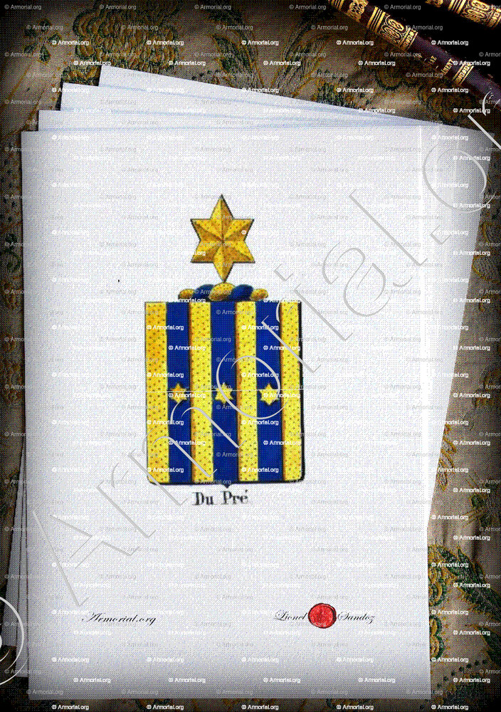 Famiglia DU PRE - Blasone DU PRE - Stemma DU PRE - Stemma di famiglia DU PRE - Lo stemma araldico della famiglia DU PRE - Lo stemma di DU PRE - Araldica e stemma DU PRE - Registro Araldico DU PRE - Stemmario DU PRE - Registro Genealogico DU PRE - Sigillo DU PRE - Archivio DU PRE - Genealogia DU PRE - Albero genealogico DU PRE - Araldica DU PRE - Origine DU PRE - In Storia DU PRE - DU PRE nella nobiltà.