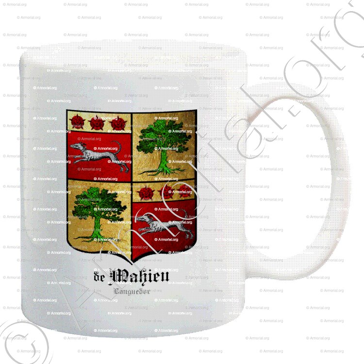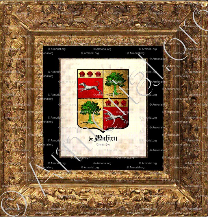- Les armoiries de la famille de MAHIEU, enregistrées dans l'Armorial d'Hozier (Généralité de Montpellier, Bas-Languedoc, 1696-1710), sont décrites comme suit :