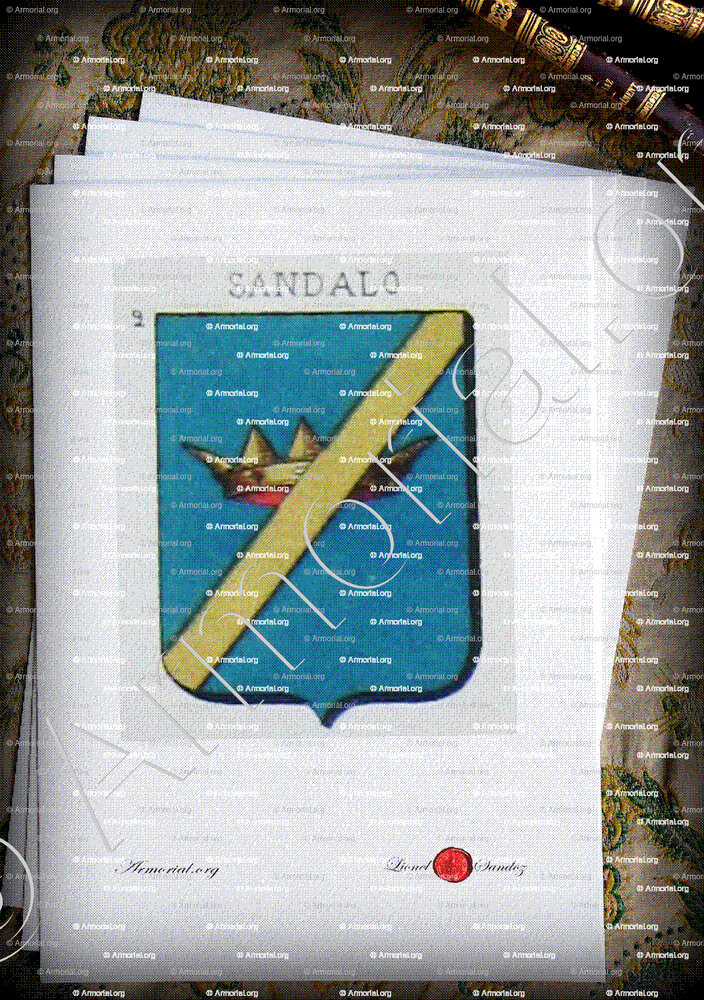 Famiglia SANDALO - Blasone SANDALO - Stemma SANDALO - Stemma di famiglia SANDALO - Lo stemma araldico della famiglia SANDALO - Lo stemma di SANDALO - Araldica e stemma SANDALO - Registro Araldico SANDALO - Stemmario SANDALO - Registro Genealogico SANDALO - Sigillo SANDALO - Archivio SANDALO - Genealogia SANDALO - Albero genealogico SANDALO - Araldica SANDALO - Origine SANDALO - In Storia SANDALO - SANDALO nella nobiltà.