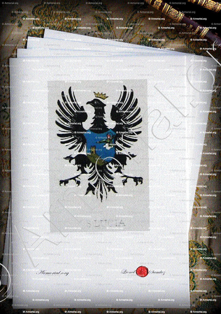 Famiglia SLUCIA - Blasone SLUCIA - Stemma SLUCIA - Stemma di famiglia SLUCIA - Lo stemma araldico della famiglia SLUCIA - Lo stemma di SLUCIA - Araldica e stemma SLUCIA - Registro Araldico SLUCIA - Stemmario SLUCIA - Registro Genealogico SLUCIA - Sigillo SLUCIA - Archivio SLUCIA - Genealogia SLUCIA - Albero genealogico SLUCIA - Araldica SLUCIA - Origine SLUCIA - In Storia SLUCIA - SLUCIA nella nobiltà.
