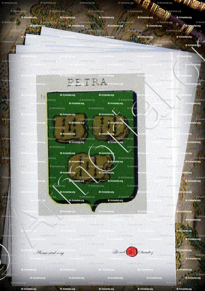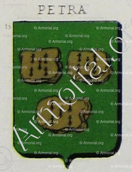 Famille PETRA - Blason PETRA - Blasonnement PETRA - Armoiries PETRA - Armoiries de famille PETRA - Armorial PETRA - Armes PETRA - Armes sur un écu PETRA - Ecu PETRA - Ecus armoriés PETRA - Bannière, flanchières, caparaçon armoriés PETRA - Bouclier armorié PETRA - Sceau PETRA - Sceau armorié PETRA - Archives PETRA - Généalogie PETRA - Arbre généalogique PETRA - Ascendance PETRA - Descendance PETRA - Héraldique PETRA - Origine PETRA . - Les PETRA dans l'Histoire - Les PETRA dans la noblesse - Devise PETRA - Armoiries de bourgeoisie PETRA - Armoiries de noblesse PETRA .