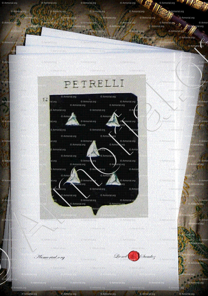 Famille PETRELLI - Blason PETRELLI - Blasonnement PETRELLI - Armoiries PETRELLI - Armoiries de famille PETRELLI - Armorial PETRELLI - Armes PETRELLI - Armes sur un écu PETRELLI - Ecu PETRELLI - Ecus armoriés PETRELLI - Bannière, flanchières, caparaçon armoriés PETRELLI - Bouclier armorié PETRELLI - Sceau PETRELLI - Sceau armorié PETRELLI - Archives PETRELLI - Généalogie PETRELLI - Arbre généalogique PETRELLI - Ascendance PETRELLI - Descendance PETRELLI - Héraldique PETRELLI - Origine PETRELLI . - Les PETRELLI dans l'Histoire - Les PETRELLI dans la noblesse - Devise PETRELLI - Armoiries de bourgeoisie PETRELLI - Armoiries de noblesse PETRELLI .
