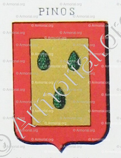 Famille PINOS - Blason PINOS - Blasonnement PINOS - Armoiries PINOS - Armoiries de famille PINOS - Armorial PINOS - Armes PINOS - Armes sur un écu PINOS - Ecu PINOS - Ecus armoriés PINOS - Bannière, flanchières, caparaçon armoriés PINOS - Bouclier armorié PINOS - Sceau PINOS - Sceau armorié PINOS - Archives PINOS - Généalogie PINOS - Arbre généalogique PINOS - Ascendance PINOS - Descendance PINOS - Héraldique PINOS - Origine PINOS . - Les PINOS dans l'Histoire - Les PINOS dans la noblesse - Devise PINOS - Armoiries de bourgeoisie PINOS - Armoiries de noblesse PINOS .