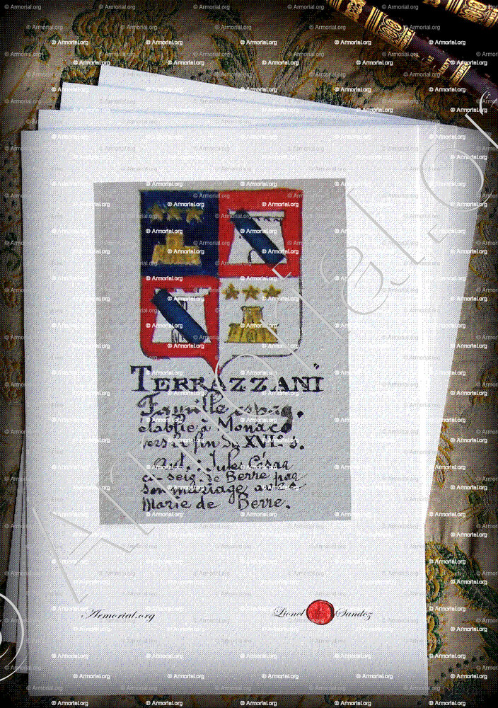Famille TERRAZZANI - Blason TERRAZZANI - Blasonnement TERRAZZANI - Armoiries TERRAZZANI - Armoiries de famille TERRAZZANI - Armorial TERRAZZANI - Armes TERRAZZANI - Armes sur un écu TERRAZZANI - Ecu TERRAZZANI - Ecus armoriés TERRAZZANI - Bannière, flanchières, caparaçon armoriés TERRAZZANI - Bouclier armorié TERRAZZANI - Sceau TERRAZZANI - Sceau armorié TERRAZZANI - Archives TERRAZZANI - Généalogie TERRAZZANI - Arbre généalogique TERRAZZANI - Ascendance TERRAZZANI - Descendance TERRAZZANI - Héraldique TERRAZZANI - Origine TERRAZZANI. - Les TERRAZZANI dans l'Histoire - Les TERRAZZANI dans la noblesse - Devise TERRAZZANI - Armoiries de bourgeoisie TERRAZZANI - Armoiries de noblesse TERRAZZANI.