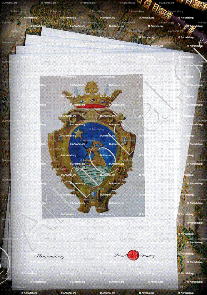 1. Une magnifique œuvre d'art, fac-similé de ce blason, aquarellé à la main sur papier Vélin d’Arches (format A4).