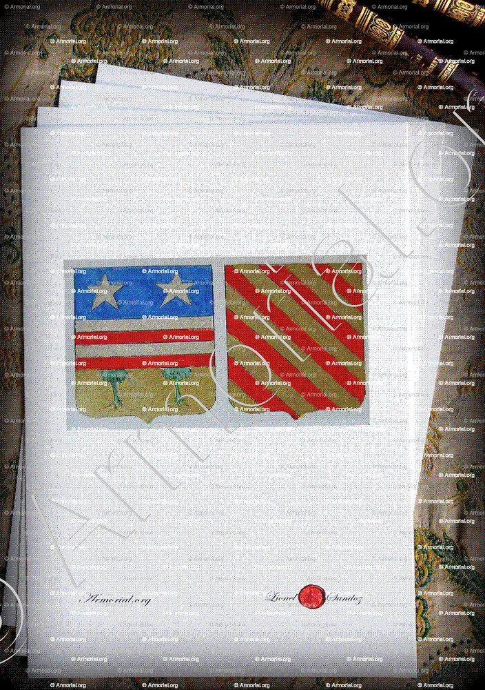 1. Une magnifique œuvre d'art, fac-similé de ce blason, aquarellé à la main sur papier Vélin d’Arches (format A4).