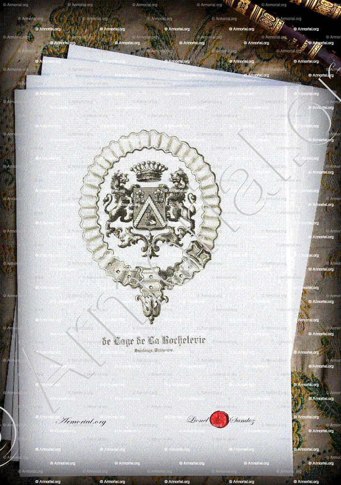 La branche de Laage de Bellefaye, originaire de Saintonge et de Paris, anoblie par la charge de secrétaire du roi exercée à Paris de 1718 à 1738, inscrite à l'ANF depuis 1993.