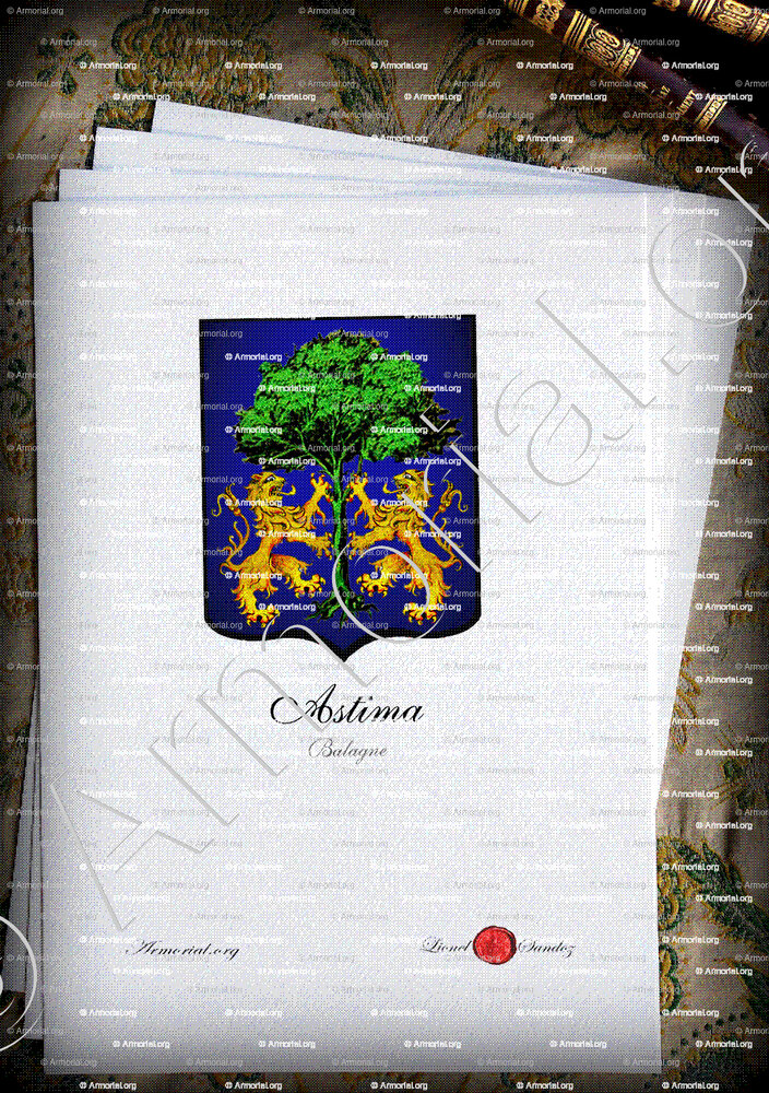 * Blason d'après la dalle funéraire de la famille ASTIMA au couvent de Marcasso.