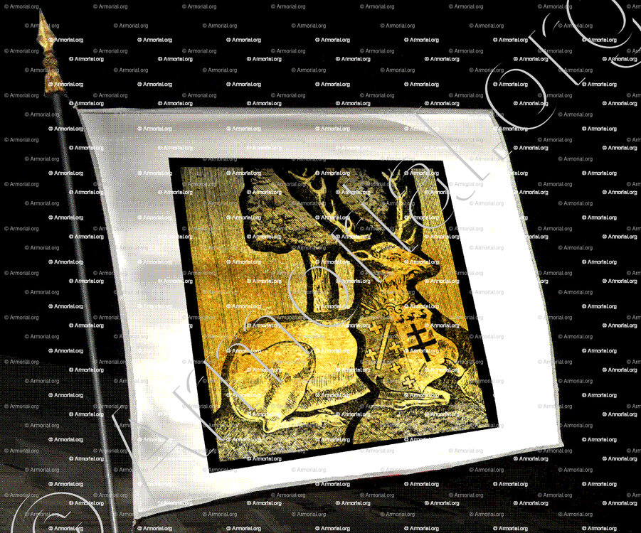- La "bande d'or brochant" sur le blason remplace dans le vitrail de Gennetines, le "chef d'or", des armoriaux.