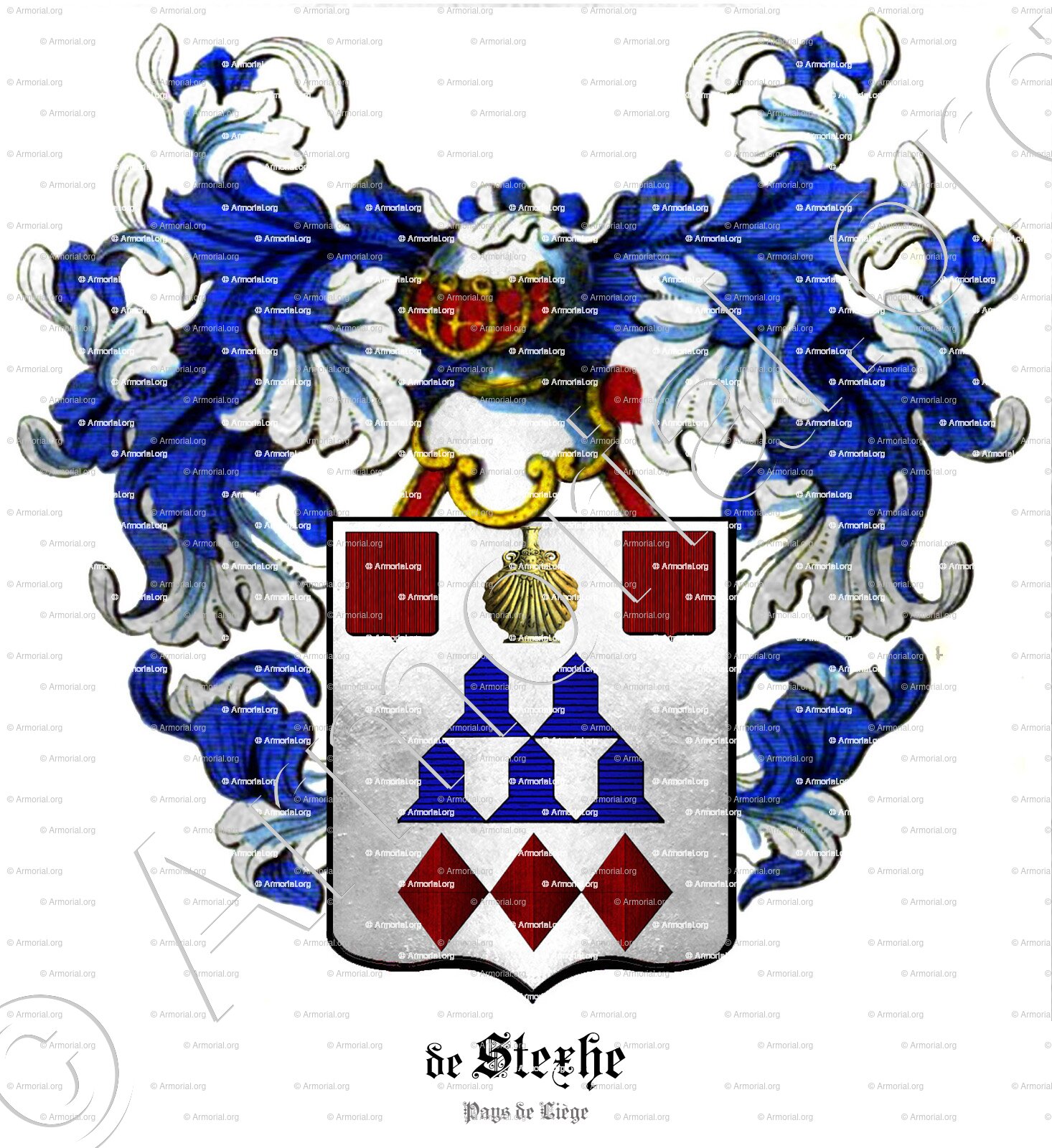 Le blason de STEXHE semble raconter une histoire d’honneur, de quête spirituelle et d’unité. La gourde d’or, centrale dans l’écu et le cimier, suggère une forte connexion à une tradition de pèlerinage ou à une mission sacrée, peut-être liée à une histoire locale ou familiale spécifique dans le Pays de Liège.
