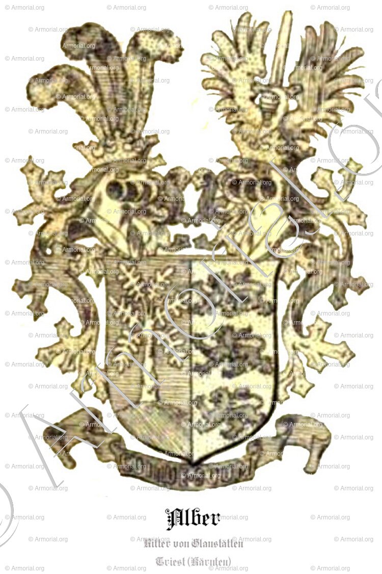 - Non è facile provare che esiste una parentela ancestrale con Rudolf Alber, citato il 1º agosto 1467 al castello di Rotenfels, nei "Regesten Kaiser Friedrichs III. ( 1440-1493 ) che menziona una parentela con la famiglia Alber della città Judenburg (Stiria) conosciuta intorno al 1536-1562 e con la famiglia Alber della città di Salisburgo, conosciuta nel 1526, e nobilitata nel 1538, e 1561.
