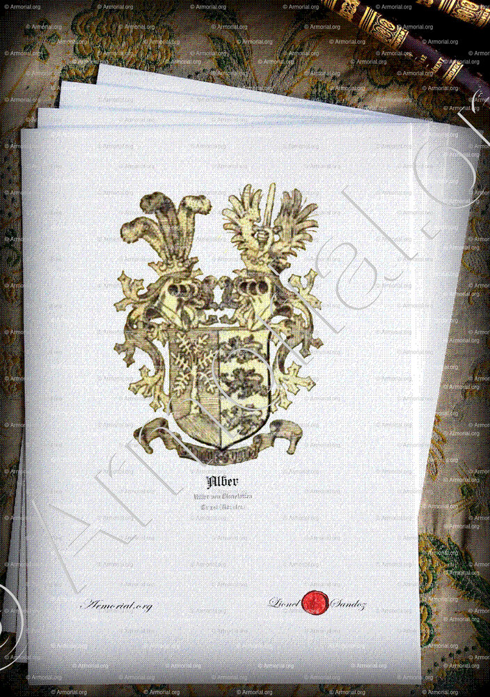 - Il n'est pas facile de prouver qu'il existe une parenté ancestrale avec Rudolf Alber, cité le 1er août 1467 au château de Rotenfels, dans les "Regesten Kaiser Friedrichs III. ( 1440-1493 ) qui mentionne une parenté avec la famille Alber de la ville Judenburg (Styrie) connue vers 1536-1562 et avec la famille Alber de la ville de Salzburg, connue en 1526, et anoblie en 1538, et 1561.