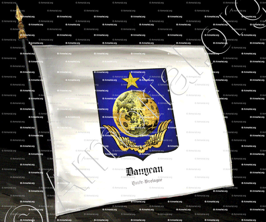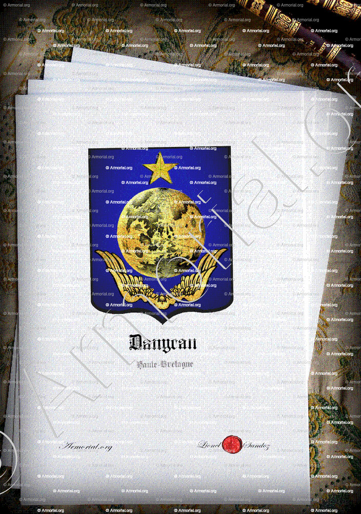 - DANYCAN (originally from Normandy), Lord of L’Épine, Annebaud, Thébaudaye, Launay-Quinard, Daoudour, Coëtmeur de Landivizian, by. of Plougourvest,