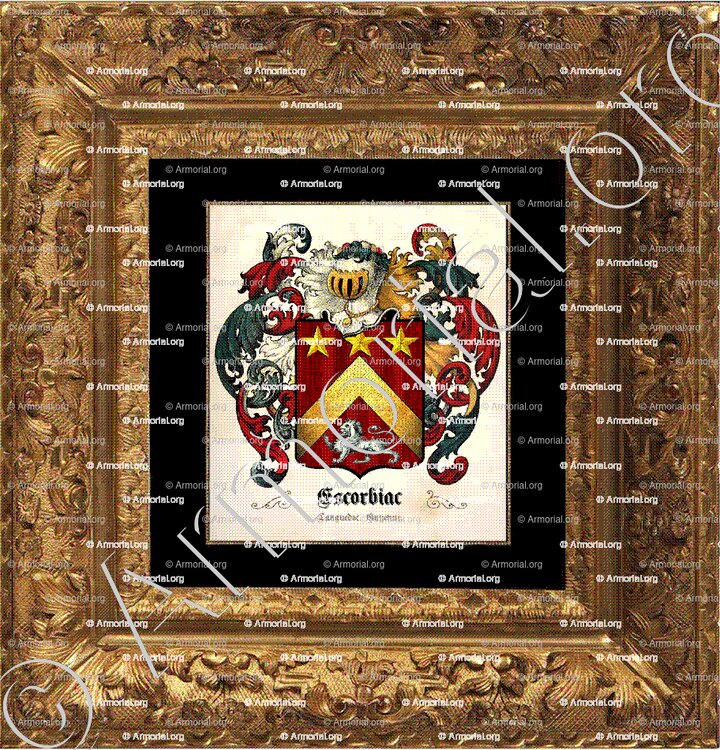 - Jean d'Escorbiac, receveur général des finances en la généralité de Toulouse en 1696, porte : " D'argent, au chevron de même, accompagné en pointe d'un lion de gueules et un chef d'azur, chargé de trois étoiles d'or. "
