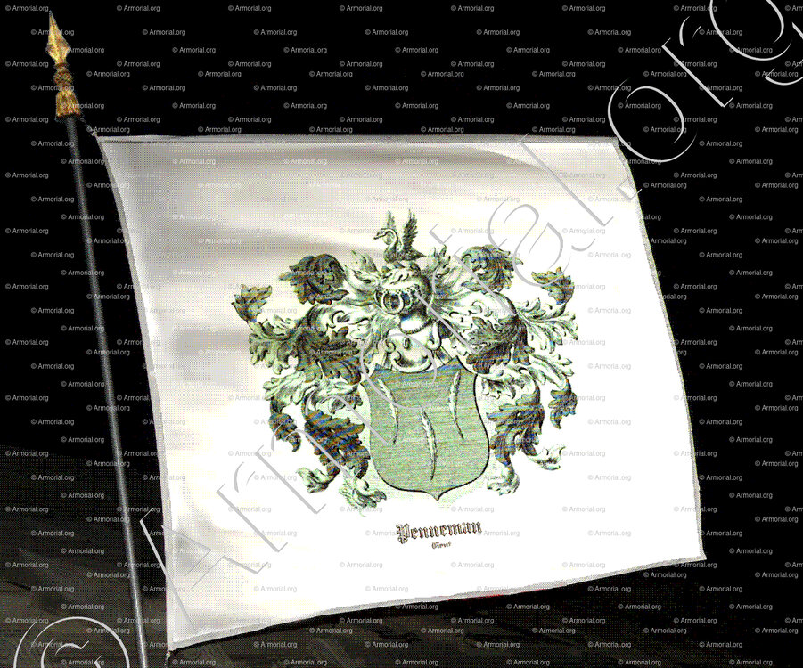 - Cimier: un cygne d'argent, les ailes levées, becqué de gueules.