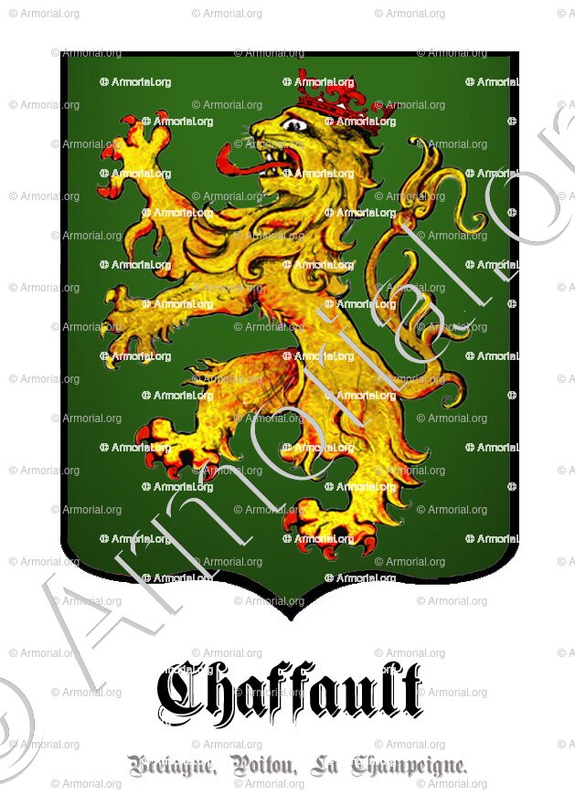 - Maison illustre du Poitou, à laquelle appartenait l'amiral du Chaffault, blessé au combat d'Oues￾sant, et dont les derniers représentants furent Julien-Gilbert, comte du Chaf￾fault, capitaine de vaisseau, chevalier de Saint-Louis, mort en émigration, et Jacques-Gabriel du Chaffault, maréchal de camp, chevalier de Saint-Louis.