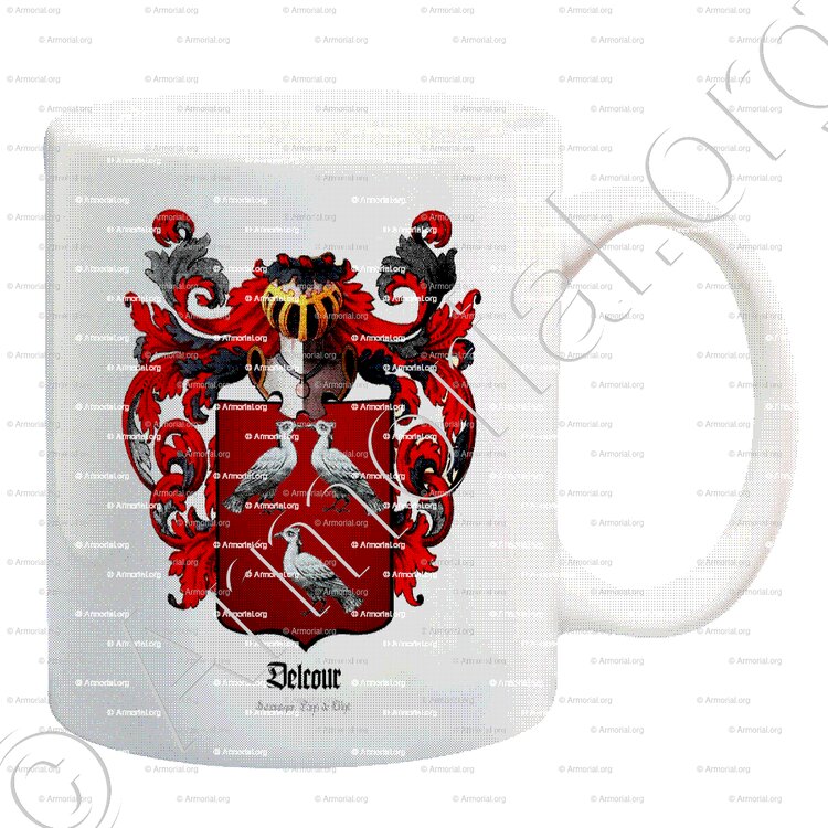 " De gueules, à trois colombes d'argent, 2 et 1, les deux du chef se becquetant. "