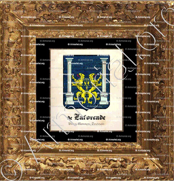 - Jean de Laforcade, squire, was capitoul of Toulouse in 1704. Arms: "Azure, two lions backed Or, langued Gules, crawling against a column Argent, set towards the edges of the shield. "