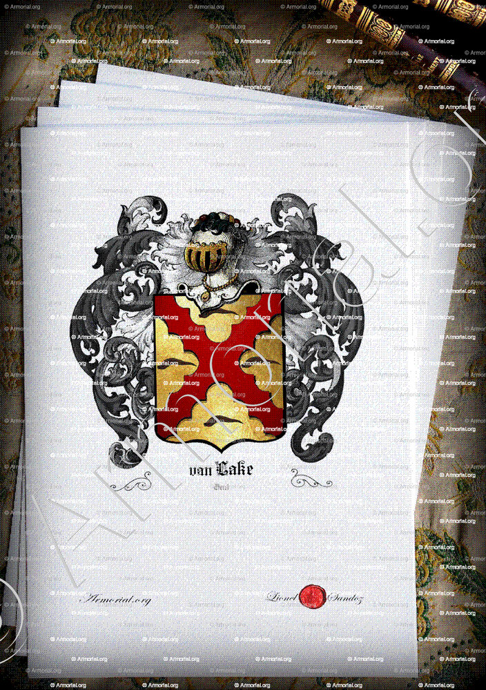 - Jean van Lake, Escuier, Seigneur de Gauve, au service de Philippe II, roi d'Espagne (1580-1598), en qualité d'Archer dans la garde du corps du roi : ledit van Lake & ses prédécesseurs ont été employés au Magistrat de la ville de Gand. Ils portent : " D'or à un sautoir endenté de gueules, avec quatre sangsues de sable. "