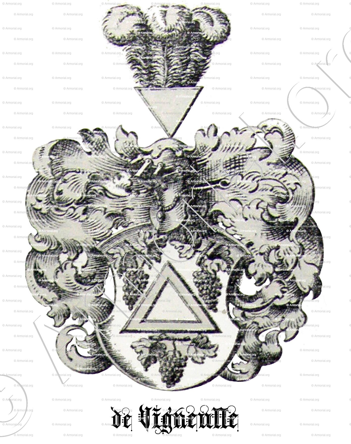 - Cimier: un triangle renversé, sommé de trois plumes d'autruche.