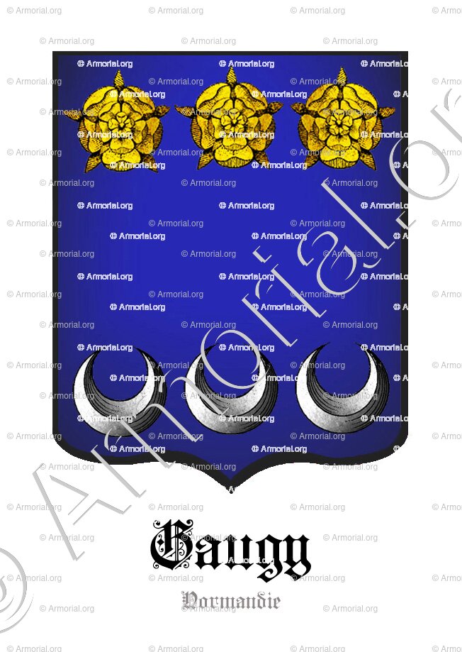- Famille de Normandie (Généralité de Rouen), maintenue & reconnue noble par Ordonnance du 26 Novembre 1670, sur la production faite des titres par Charles et Antoine de GAUGY.
