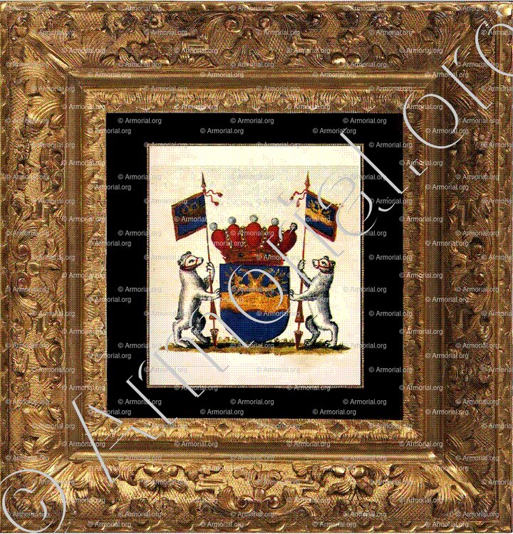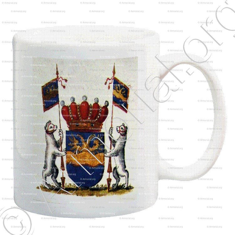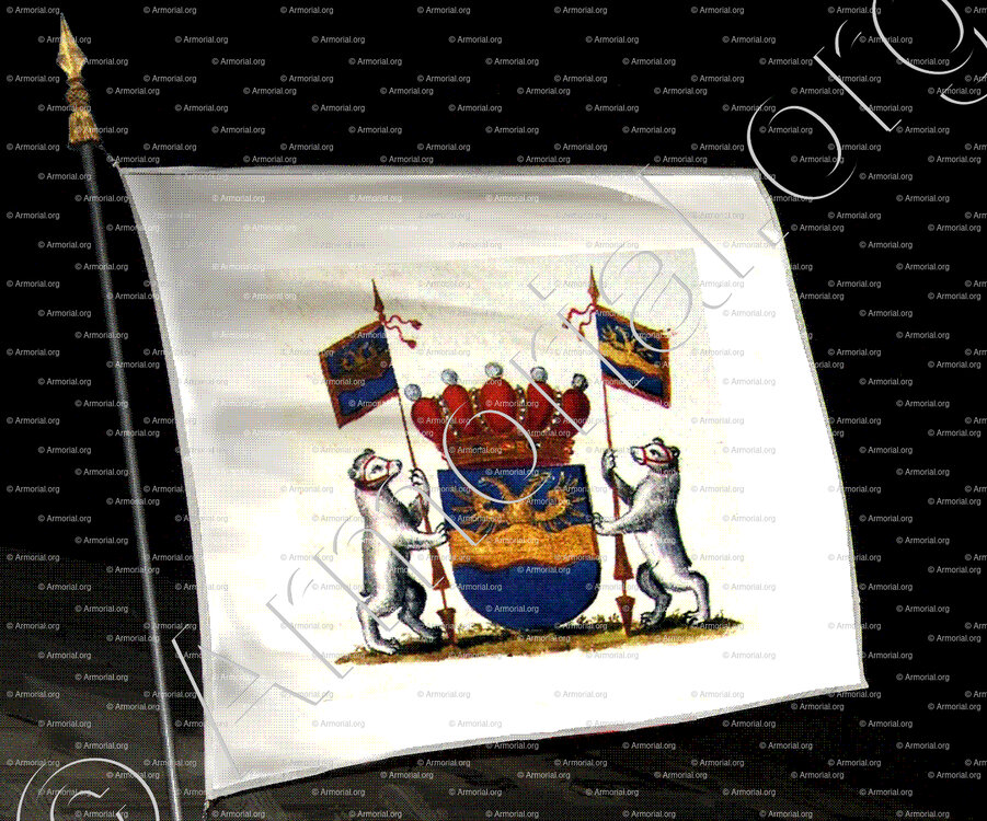 - Supports : deux ours d'argent muselés de gueules, tenant chacun une banderole aux armes de l'écu.