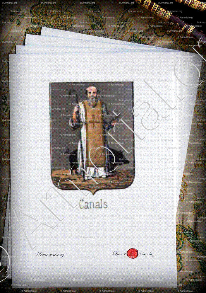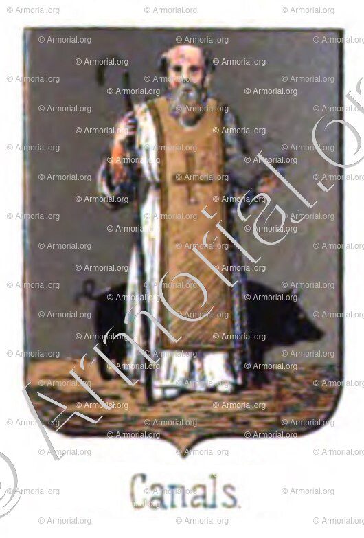 CANALS_.Antiguo escudo de la comuna, grabado del año 1859.España
